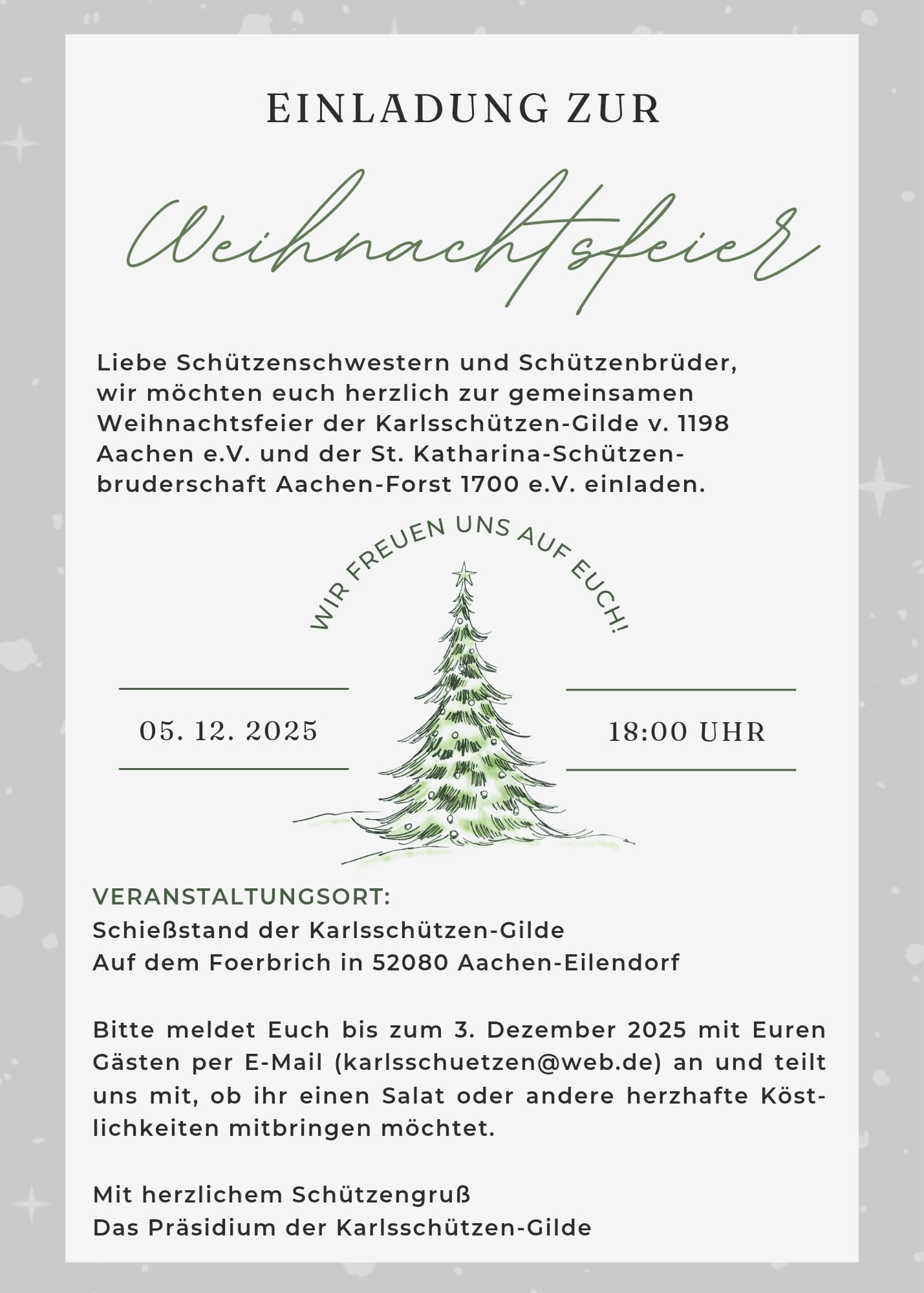 Bei herrlichem Kaiserwetter wurden die Schießwettbewerbe innerhalb der Karlsschützen-Gilde am darauffolgenden Tag im Rahmen ihres Schützenfestes fortgesetzt. In einem langen und spannenden Duell gegen die Prinzessin des Vorjahres wurde Ines Conrad mit dem 286. Schuss zum zweiten Mal Prinzessin der Karlsschützen-Gilde. Als gegen Ende des Wettbewerbs um den Titel des Schützenkönigs bzw. der Schützenkönigin Robert van Eisern, König der letzten beiden Jahre und Präsident der Gilde, an das Kleinkaliber trat, wurde es auf der Wiese ruhig. Schon bei den vorherigen Schützen hätte man sprichwörtlich eine Stecknadel fallen hören. Während anfangs 9 Schützenbrüder und –schwestern um den begehrten Titel kämpften, waren es zur späteren Stunde lediglich 6 Karlsschützen. Mit seiner ruhigen Art fokussierte van Eisern den Holzvogel, zielte und gab mit dem 274. Schuss den entscheidenden Treffer ab. Unter lautem Jubel fiel das Tier. Mit Robert van Eisern hat die Karlsschützen-Gilde nun erneut einen Kaiser in ihren Reihen. Dieser Erfolg gelang zuletzt Alfred Defourney im Jahr 2008. Zeitgleich konnte sich Robert van Eisern ebenfalls zum dritten Mal in Folge den Titel Ehrenkönig der Karlsschützen-Gilde sichern. Scheibenkönig der Karlsschützen wurde erstmalig Kevin Badalian.
